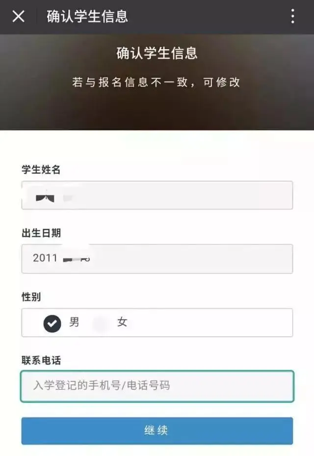 輸入入學登記手機號碼,確認學生信息。