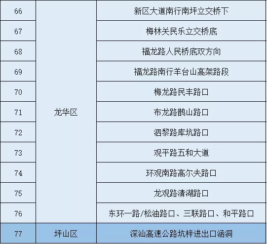 注意避開以下97條易積水路段