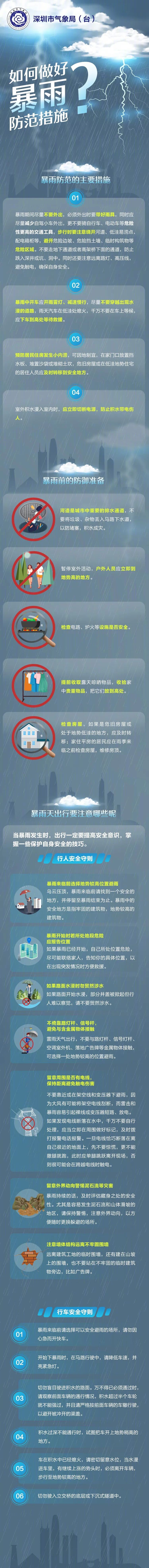 見圳客戶端·深圳新聞網(wǎng)2020年6月5日訊(見圳客戶端、深圳新聞網(wǎng)記者 鄭曉鵬)記者從深圳市氣象臺(tái)獲悉,受西南季風(fēng)影響,預(yù)計(jì)6-8日深圳市(含深汕)將出現(xiàn)今年以來最強(qiáng)“龍舟水”過程,有持續(xù)性暴雨到大暴雨,伴有8級(jí)左右雷暴大風(fēng),強(qiáng)降雨主要出現(xiàn)在6-8日的凌晨至上午;8日午后降雨減弱。9-12日多云,天氣轉(zhuǎn)熱。