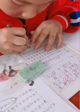 前兩天,小編就看到了這個(gè)聽(tīng)寫前,虔誠(chéng)地將知識(shí)“捧進(jìn)”腦子的小盆友: