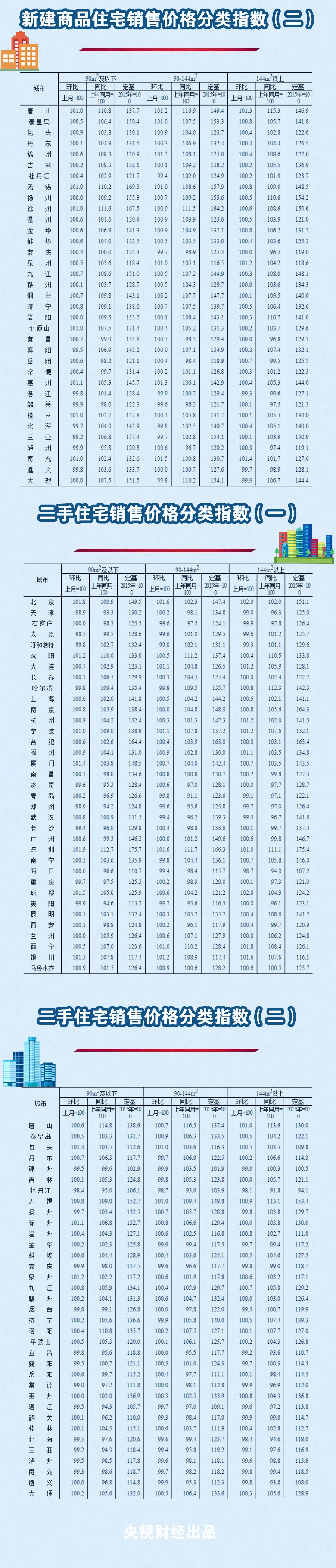 央視財(cái)經(jīng)2020年6月15日訊 國家統(tǒng)計(jì)局今天發(fā)布的5月份70大中城市新建商品住宅銷售價(jià)格顯示:一二三線城市新建商品住宅銷售價(jià)格環(huán)比漲幅均略有擴(kuò)大,二手住宅漲幅與上月相同或微擴(kuò)。環(huán)比看,銀川漲幅2.1%領(lǐng)跑。