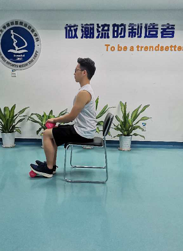 坐姿提踵,坐在椅子上,大腿平行于地面,小腿垂直于大腿,前腳掌置于有一定高度的墊片上,雙手持一合適的重物于膝蓋上;小腿發(fā)力慢抬至最高點(diǎn)保持3秒鐘后慢放至最低點(diǎn)保持3秒鐘,此動(dòng)作重復(fù)30次-50/次×3-5組。