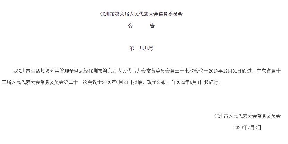 見圳客戶端·深圳新聞網(wǎng)2020年7月4日訊(見圳客戶端、深圳新聞網(wǎng)記者 葉梅)記者從深圳市人大常委會官方網(wǎng)站獲悉,《深圳市生活垃圾分類管理條例》(以下簡稱《條例》)經(jīng)深圳市第六屆人民代表大會常務(wù)委員會第三十七次會議于2019年12月31日通過,廣東省第十三屆人民代表大會常務(wù)委員會第二十一次會議于2020年6月23日批準,將于2020年9月1日起施行,從垃圾分類投放、收集運輸處理、源頭減量和循環(huán)利用等方面提出了明確要求。