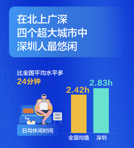 曾經(jīng)有一個詞叫做“深圳速度”,代表高效率高速度高質(zhì)量的發(fā)展。而如今,大調(diào)查卻發(fā)現(xiàn)了這里也別有一番慢生活,在北上廣深四個超大城市中,深圳人最悠閑,日均休閑時間(2.83小時)高出全國平均水平24分鐘。