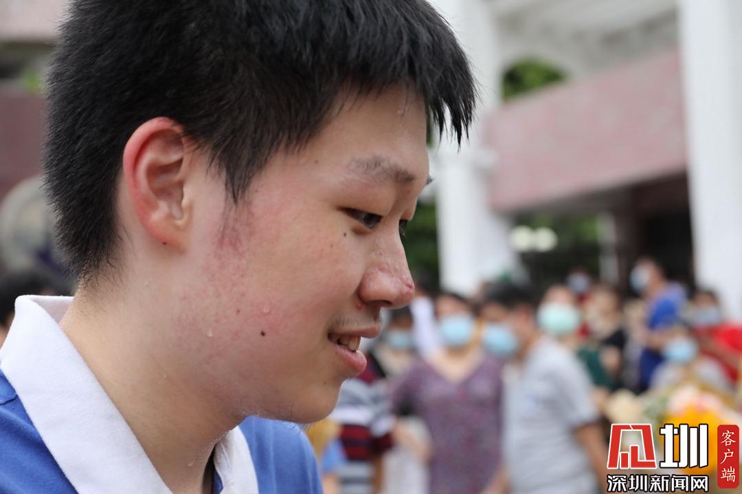 深圳高級中學(xué)考點(diǎn)外考生自信滿滿走出考場。