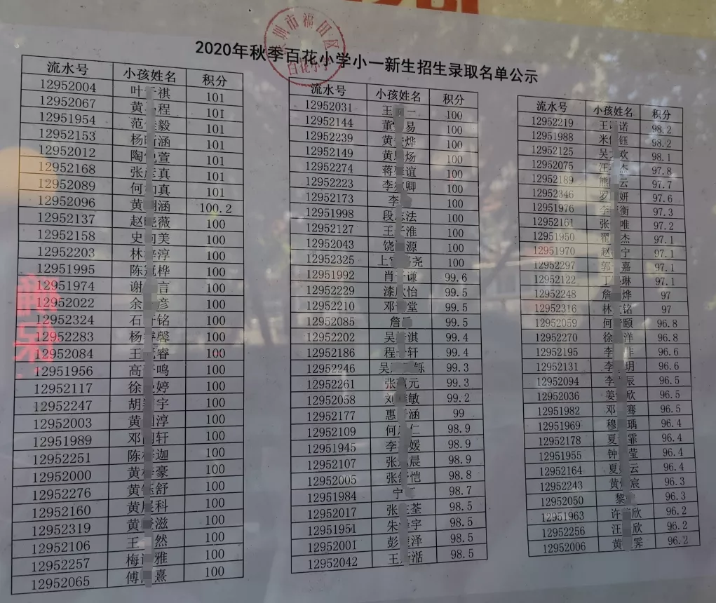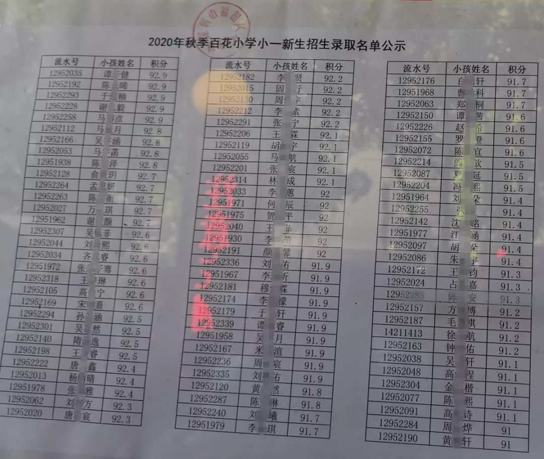 2020年福田區(qū)公辦小一新生錄取名單來(lái)了,部分學(xué)校最低錄取積分曝光