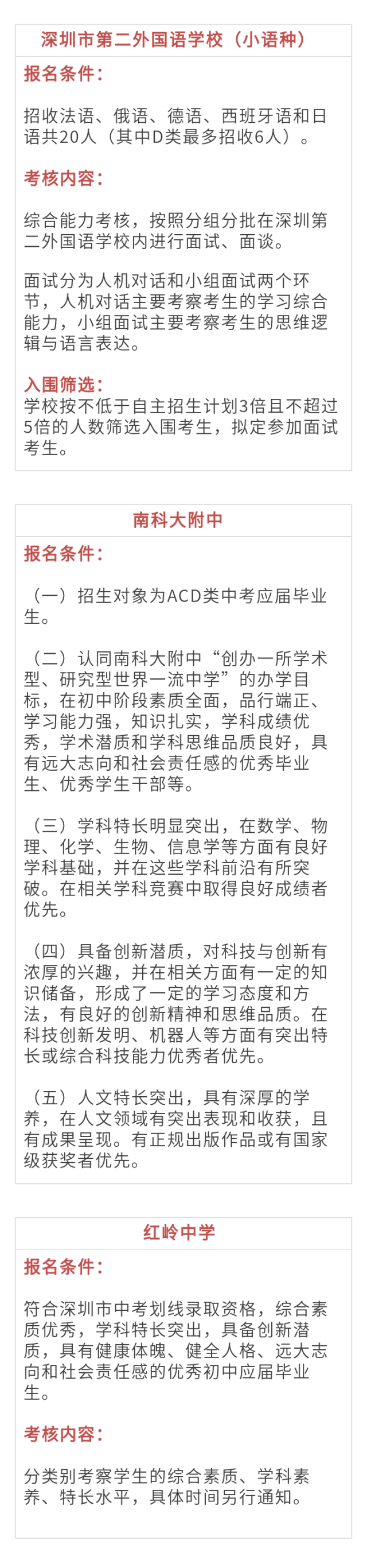 對(duì)于自招,各高中有哪些要求?小南匯總了深圳一類自主招生19所高中信息,一起來(lái)看看吧!