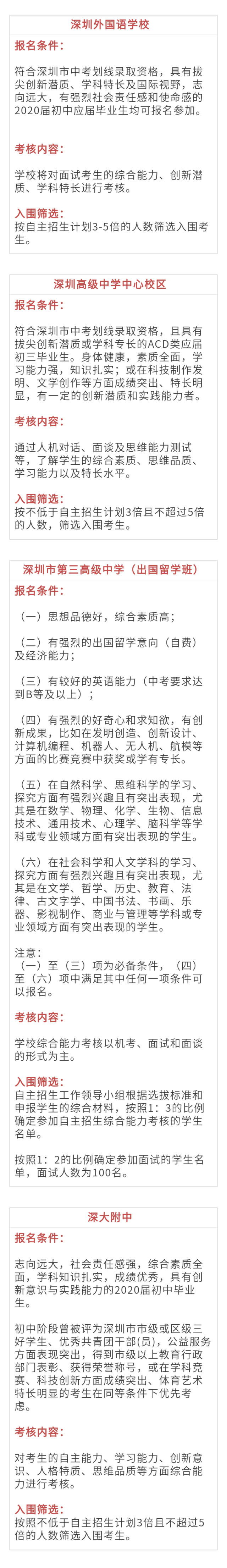 原標(biāo)題:招1385人!深圳2020年一類自主招生19所高中信息匯總