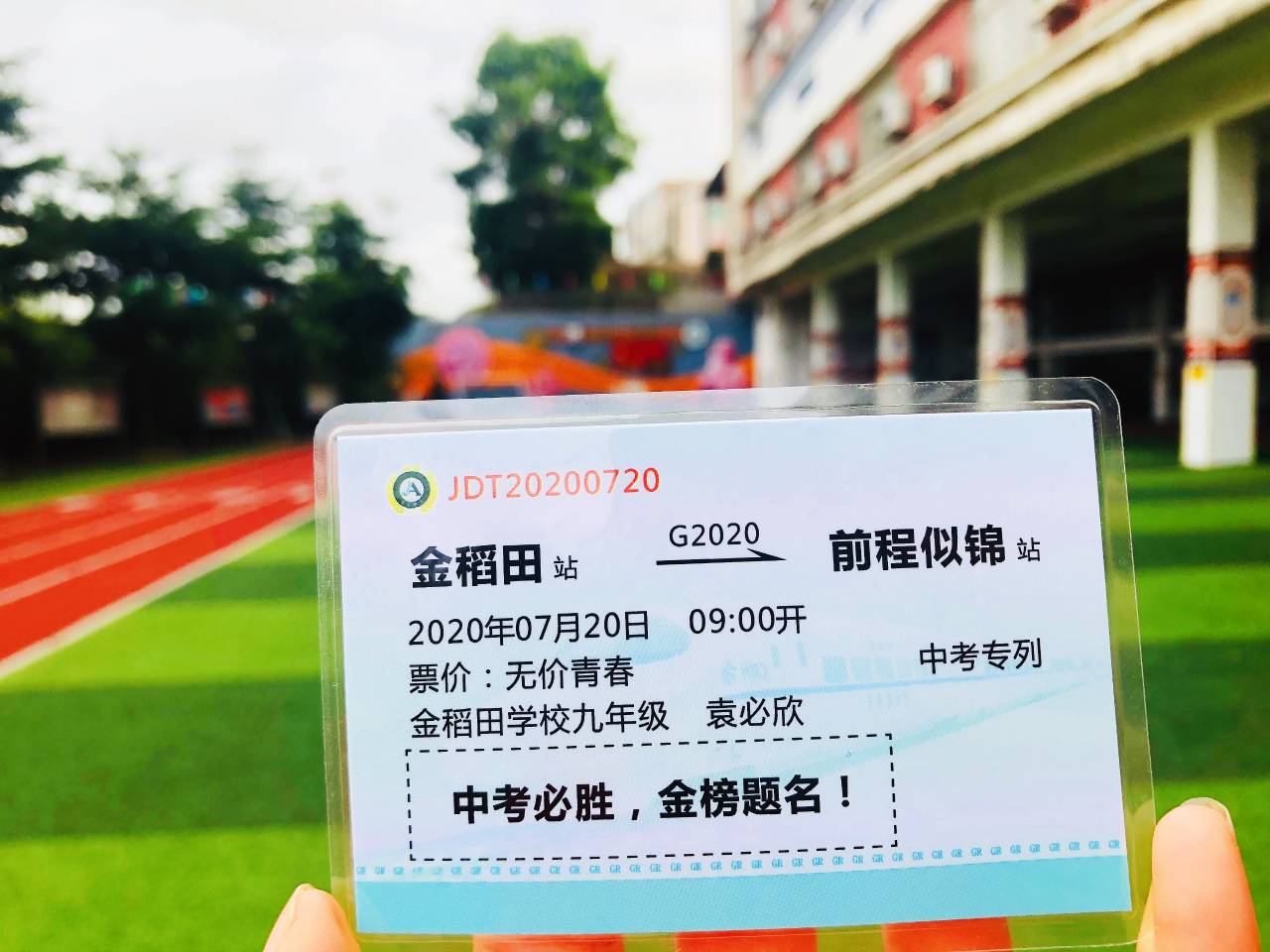 龍崗區(qū)金稻田學(xué)校的學(xué)子們趕往考場前,校長老師們送上了“護考車票”,通往“前程似錦”!目前,學(xué)子們在交警的護送下已順利到達(dá)考場。(記者李麗、周紅聲)