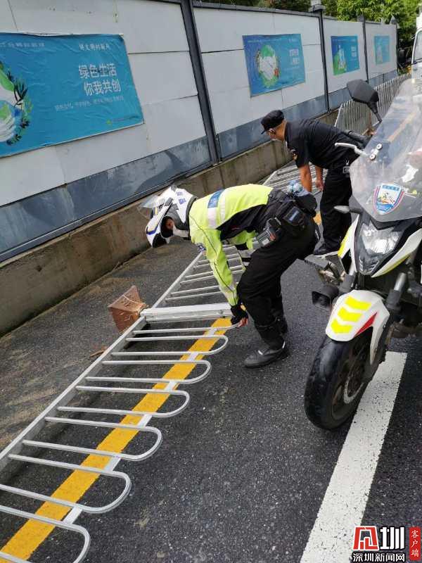 9月21日9時(shí)許,羅湖大隊(duì)黃貝中隊(duì)鐵騎隊(duì)員羅益華巡邏至仙湖路時(shí),發(fā)現(xiàn)路邊近5米長(zhǎng)的護(hù)欄倒地,路過(guò)的車(chē)輛紛紛降低速度避讓?zhuān)瑖?yán)重影響過(guò)往車(chē)輛和行人的正常通行,安全隱患極大,羅益華立即與群眾一同將護(hù)欄扶正、歸位,交通隱患得到及時(shí)排除,道路也恢復(fù)暢通。