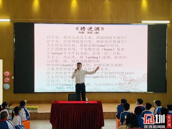 深圳新聞網(wǎng)訊(深圳新聞網(wǎng)記者 彭桂紅 通訊員 梁文雅)為進(jìn)一步弘揚(yáng)中華優(yōu)秀傳統(tǒng)文化,近日,深圳市錦田小學(xué)特邀青年文化學(xué)者、深圳市百姓學(xué)習(xí)之星、深圳市公益閱讀推廣人、深圳市首屆家園文化文學(xué)會(huì)會(huì)長(zhǎng)晉玉東為廣大師生開(kāi)展了一場(chǎng)別開(kāi)生面的“中國(guó)古典詩(shī)詞朗誦藝術(shù)鑒賞——兼談如何朗誦好一首詩(shī)”公益文化講座。羅湖區(qū)錦田小學(xué)德弘校區(qū)副校長(zhǎng)劉向陽(yáng)、羅湖區(qū)錦田小學(xué)德弘校區(qū)主任張俊暉、羅湖區(qū)未來(lái)學(xué)校主任謝淑紅、德弘二年級(jí)家委代表以及語(yǔ)文科組老師,一同參加。活動(dòng)由班主任梁文雅和學(xué)生劉沛東、張家琪共同主持,近200名學(xué)生參加了講座活動(dòng)。整場(chǎng)講座師生熱情高漲,主講嘉賓深入淺出、娓娓道來(lái),參與學(xué)生思維活躍、表現(xiàn)積極,帶動(dòng)校園形成了學(xué)習(xí)詩(shī)詞文化的良好氛圍。