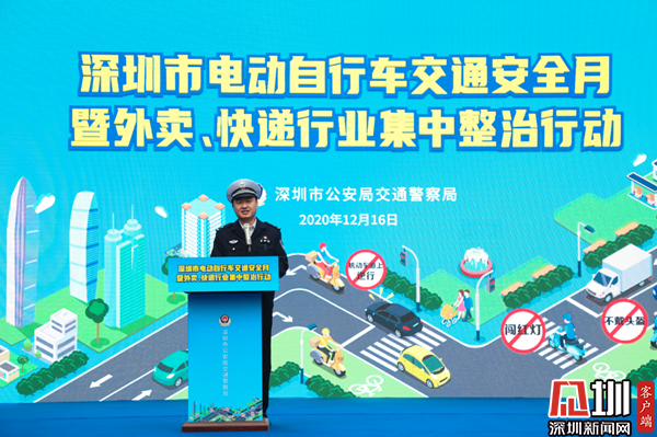 見圳客戶端·深圳新聞網(wǎng)12月16日訊(記者 郭含笑 通訊員 劉明)12月16日下午,深圳交警在羅湖區(qū)東門文化廣場舉行深圳市電動自行車交通安全月暨外賣、快遞行業(yè)集中整治行動啟動儀式?,F(xiàn)場邀請全市外賣、快遞企業(yè)代表參加啟動儀式。深圳市交警局局長徐煒、深圳市交警局副局長馮新毅及相關(guān)領(lǐng)導班子出席了啟動儀式。