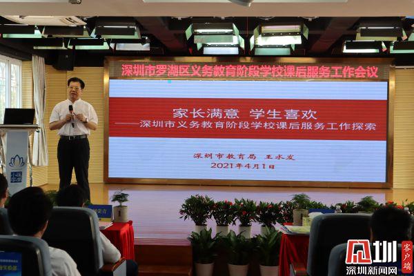 王水發(fā)以“家長滿意,學生喜歡”為主題發(fā)表看法,梳理工作背景,指出發(fā)展課后教育工作的背景和初心——四個有利于:利于解決家長四點半就要接送孩子的困難、有利于利用公共資源,發(fā)展學生的興趣與特長、有利于探索實現(xiàn)學生在學校完成作業(yè)、有利于提高家長教育獲得感。以做好做實為要求,鼓勵羅湖區(qū)辦好這件學校和家長都關心關注的工作。