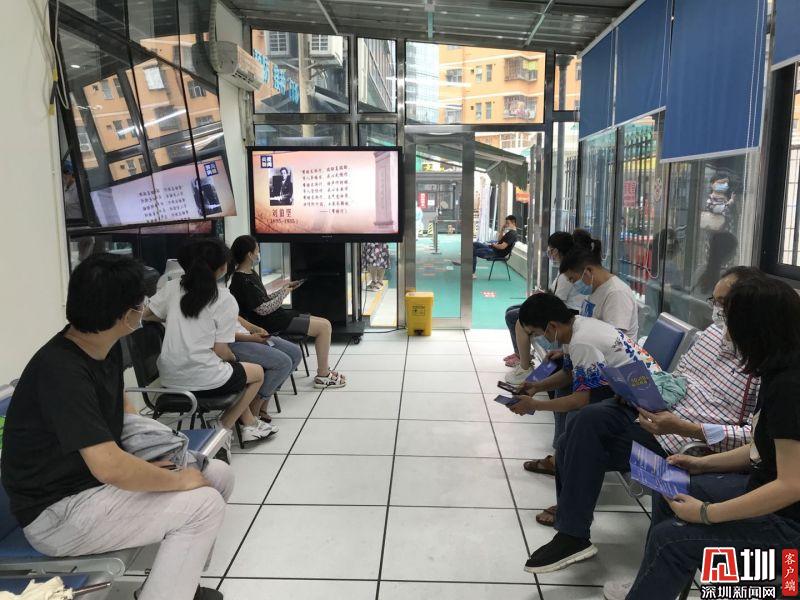 羅湖醫(yī)院集團(tuán)翠嶺社康中心疫苗接種留觀區(qū)域轄區(qū)居民觀看《為了新中國(guó),我愿付出一切》。