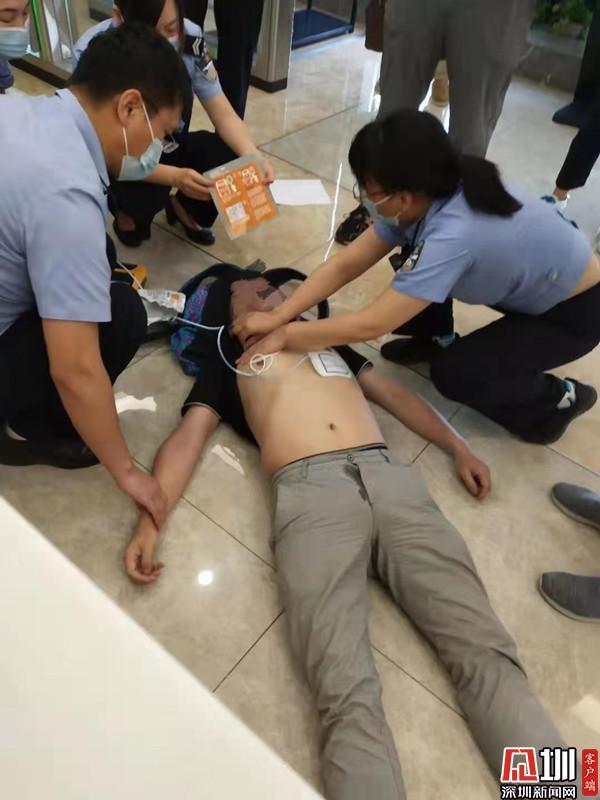 5月8日上午,市民韓先生及朋友李先生同行前往羅湖車管所處理個人交通違章業(yè)務。正當兩人在車管大廳咨詢臺詢問相關業(yè)務時,韓先生突發(fā)身體不適,徑直癱軟在朋友李先生身上?,F場值班民警陳瑞、李曉燕、楊濤發(fā)現該情況后,快速上前查看,只見該男子躺在地上,雙目緊閉、臉色發(fā)青、心臟驟停、呼吸微弱,在其耳邊連聲叫喊,也沒有任何反應。