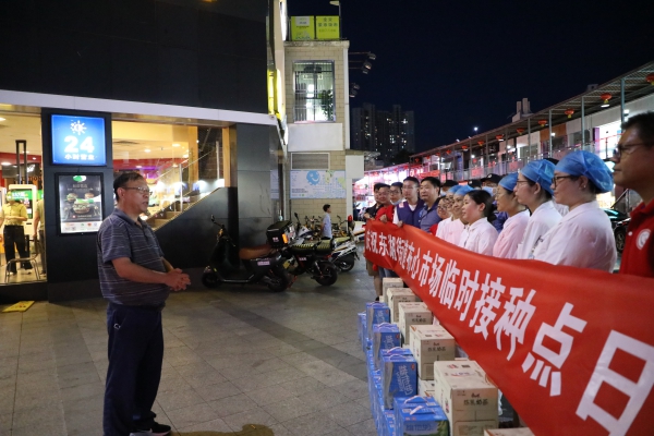 “大家辛苦了,感謝大家的辛勤付出!”在布心市場(chǎng)接種點(diǎn),程時(shí)菊首先向全體工作人員致以誠(chéng)摯的感謝,并叮囑他們要注意勞逸結(jié)合,做好自身防護(hù)。他強(qiáng)調(diào)全體工作人員面對(duì)艱苦的工作環(huán)境,沒(méi)有絲毫退縮,努力克服種種困難,始終以飽滿的熱情、昂揚(yáng)的斗志,堅(jiān)守崗位、加班加點(diǎn)、辛勤工作,每天圓滿完成了新冠疫苗接種清零任務(wù)。目前深圳疫情防控形勢(shì)嚴(yán)峻,希望大家繼續(xù)發(fā)揚(yáng)攻堅(jiān)克難、甘于奉獻(xiàn)的精神,全力加快新冠疫苗接種速度,為人民群眾的生命健康筑起堅(jiān)實(shí)屏障。