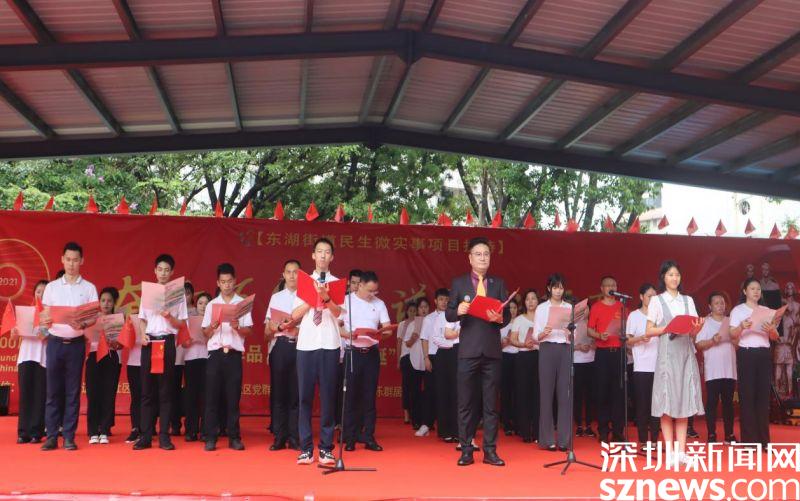 讀特客戶端·深圳新聞網(wǎng)2021年7月30日訊(見習(xí)記者 邱婕 通訊員 黃小花)百年征程波瀾壯闊、百年初心歷久彌堅(jiān)、百年成就催人奮進(jìn)、百年歌聲唱響今天。7月30日上午,“百幅紅色作品,獻(xiàn)禮百年華誕”東樂社區(qū)建黨100周年慶?;顒?dòng)在東樂花園文化廣場(chǎng)舉行。東湖街道黨工委副書記、辦事處主任劉慧堅(jiān),黨工委副書記、人大工委主任謝統(tǒng)敏,東湖街道二級(jí)調(diào)研員、東樂社區(qū)第一書記曾列文,東湖街道辦事處副主任李民,羅湖區(qū)退役軍人事務(wù)局副局長(zhǎng)何朝陽,東樂社區(qū)黨委書記劉芳,東樂社區(qū)社工與義工及廣大居民朋友400余人參與此次活動(dòng)。