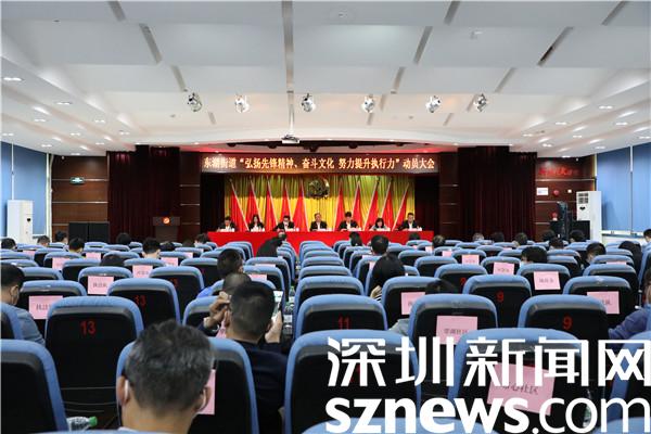 讀特客戶端·深圳新聞網(wǎng)2021年11月19日訊(記者 郭含笑 通訊員 黃貽凱)感恩奮進跟黨走,緊鑼密鼓再出發(fā)。羅湖區(qū)第八次黨代會、區(qū)“兩會”的順利閉幕是一個結束,也是羅湖新征程、新使命、新奮斗的開始。為弘揚羅湖光榮傳統(tǒng)、賡續(xù)羅湖血脈傳承,在街道全體黨員干部中形成憋足一口氣趕超奔跑、鉚足一股勁狠抓落實的風氣,把先鋒精神、奮斗文化轉化為強大執(zhí)行力、踐行在奮斗新征程,11月19日下午,深圳市羅湖區(qū)東湖街道召開“弘揚先鋒精神、奮斗文化 努力提升執(zhí)行力”動員大會。街道黨工委書記程時菊等處級干部,各辦、中心全體在編人員,各社區(qū)黨委書記、副書記、副站長、城管專干共100余人參加會議。