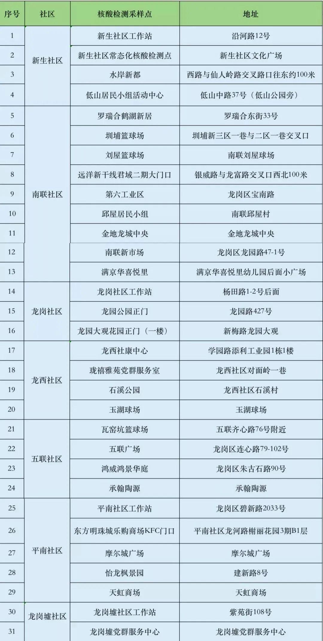 最新!龍崗區(qū)免費(fèi)核酸檢測(cè)點(diǎn)匯總