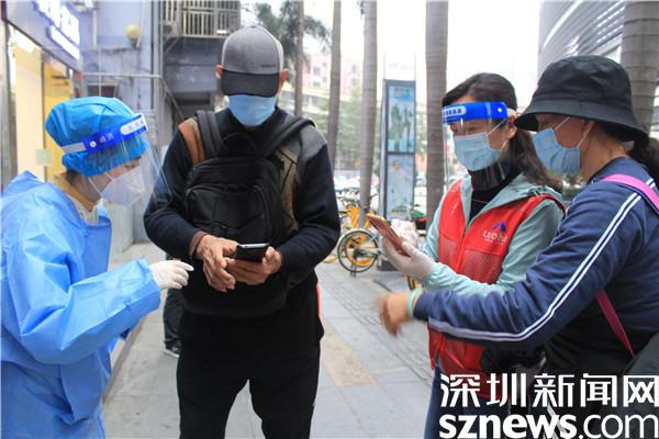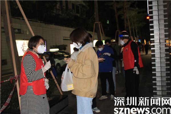 “楊妹,我來(lái)了,還帶來(lái)了一個(gè)人?!?3日晚,正在羅湖區(qū)桂園街道老圍社區(qū)禧程酒店核酸檢測(cè)點(diǎn)忙碌的社工楊女士,接到志愿者溫寶珍的電話。溫寶珍從“0107疫情”開(kāi)始以來(lái),每天都在核酸檢測(cè)點(diǎn)協(xié)助核酸檢測(cè),這晚她把自己的兒媳婦吳永霞也帶來(lái)了?!捌牌艅倧钠渌鐓^(qū)的核酸檢測(cè)點(diǎn)做完義工回來(lái),聽(tīng)說(shuō)老圍社區(qū)需要人,放下飯碗就來(lái)了。婆婆這么大年紀(jì)了還沖在前面,我做兒媳婦的,怎么也要向婆婆學(xué)習(xí)啊?!眳怯老紝?duì)社工說(shuō)?!皯?yīng)該的應(yīng)該的,疫情當(dāng)前,每個(gè)人都有義務(wù)出來(lái)與病毒作戰(zhàn),光是靠社區(qū)工作者不行,他們太累了?!睖貙氄溥呎f(shuō)邊幫兒媳穿好義工服,把粵核酸的二維碼交給兒媳,并教兒媳如何在手機(jī)上查驗(yàn)。