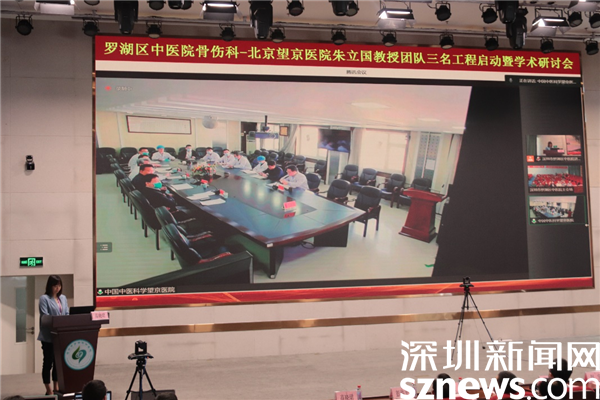 本次啟動(dòng)儀式以“線上+線下”的方式進(jìn)行。望京醫(yī)院院長李浩以及朱立國教授團(tuán)隊(duì)在北京通過視頻連線參與啟動(dòng)儀式,羅湖醫(yī)院集團(tuán)院長孫喜琢、羅湖區(qū)中醫(yī)院黨政領(lǐng)導(dǎo)班子及骨傷科骨干成員共同參會(huì)。