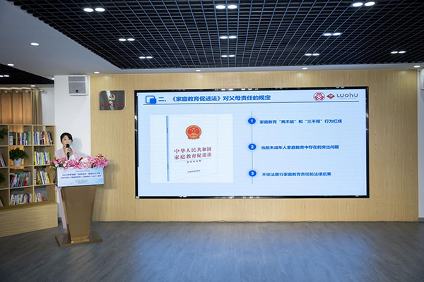 沙龍伊始,羅湖區(qū)人民法院民一庭(家事庭)副庭長欒媛帶來《〈家庭教育促進(jìn)法〉解讀》的專題講座,闡明《家庭教育促進(jìn)法》的意義,明晰家長“兩不得”“三不能”的行為紅線,并針對當(dāng)下大多家庭教育存在生而不養(yǎng)、養(yǎng)而不教等突出問題進(jìn)行剖析,結(jié)合工作歷程中生動(dòng)形象的案例,讓許多家長明確了法律的要求。同時(shí),欒法官也為家長們提出了實(shí)用科學(xué)的家庭教育內(nèi)容和方法,也對家校社協(xié)同育人機(jī)制發(fā)表了自己的想法。