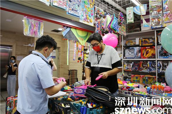 當(dāng)天,執(zhí)法人員對(duì)位于羅湖區(qū)筍崗文具玩具專營市場的33家經(jīng)營商戶進(jìn)行檢查,檢查發(fā)現(xiàn)其中3家商店經(jīng)營的“兒童美妝包”等兒童化妝品外包裝上未標(biāo)識(shí)化妝品備案號(hào),當(dāng)事人現(xiàn)場無法向執(zhí)法人員提供涉事兒童化妝品的備案材料,涉嫌經(jīng)營未經(jīng)備案的化妝品,此外,專項(xiàng)行動(dòng)中執(zhí)法人員還查處了3家涉嫌經(jīng)營“三無”產(chǎn)品的玩具類經(jīng)營商戶。經(jīng)初步清點(diǎn),現(xiàn)場共查獲涉嫌違法的兒童化妝品、玩具20余件,執(zhí)法人員現(xiàn)場依法將上述物品予以扣押,目前案件正在進(jìn)一步調(diào)查中。