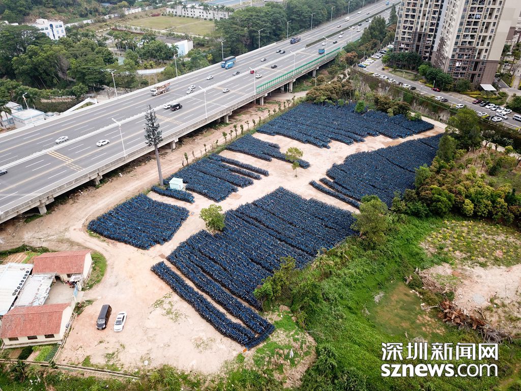 3月19日,深圳新聞網(wǎng)記者用無人機拍到了一組畫面,鏡頭下,層層疊疊堆放的藍(lán)色單車相當(dāng)震撼。這塊空地位于龍崗區(qū)怡美苗圃場附近,原本只是花圃,如今成為小藍(lán)單車的堆放場。