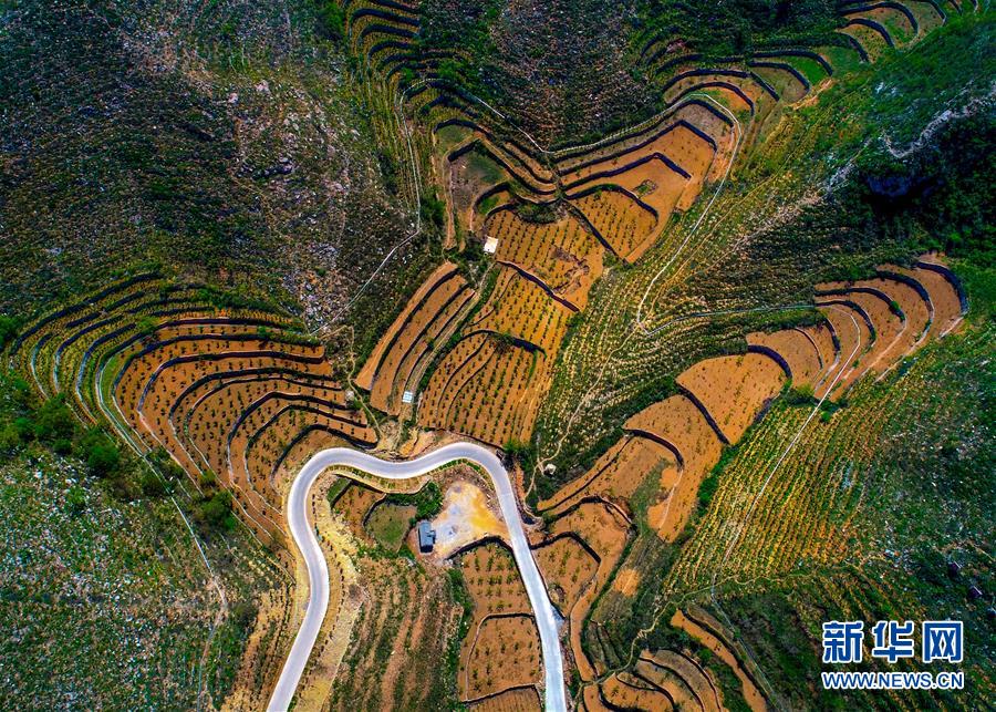 這是5月6日無人機(jī)拍攝的涉縣關(guān)防鄉(xiāng)后池村梯田和公路。初夏時節(jié),河北省邯鄲市涉縣山間的梯田綠意盎然,猶如一幅幅美麗畫卷。新華社記者 王曉 攝