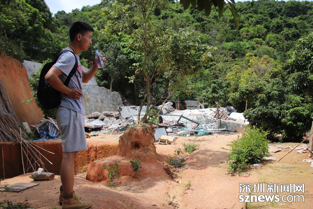 5月16日,深圳新聞網(wǎng)記者爬上羊臺(tái)山,用無(wú)人機(jī)和相機(jī)拍下羊臺(tái)山毀林案件涉案的兩棟違法建筑拆除后的情景。記者從羊臺(tái)山隱蔽的一處登山,山路崎嶇且陡峭,沿路都是荔枝林,多頭大型犬見(jiàn)到陌生人狂吠不已。耗時(shí)三四十分鐘登臨山腰,可俯瞰西麗水庫(kù),視野極佳。