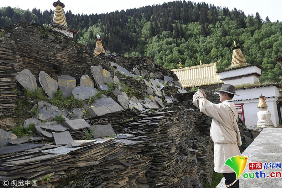 在四川阿壩州壤塘縣棒托寺內珍藏約50萬片明清時期鐫刻的大藏經《甘珠爾》和《丹珠爾》,大藏經左高9.7米,右高9.2米,長46米、左寬160米,右寬13米,占地598平方米,是目前全世界保存最完整、規(guī)模最宏大、內容最豐富的石刻大藏經孤品。據史料記載,由明末清初60余名石匠辛勤鐫刻9年而成。石刻藏文經書圖文并茂,筆法流暢,疏密有致,陰陽相背,滿版生輝。具有極高的文物和藝術研究價值。圖為堆積的石刻大藏經孤品。圖片作者/視覺中國