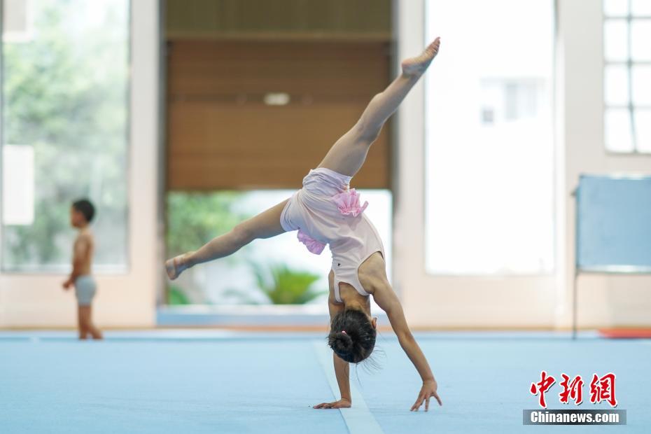 7月16日,貴州榕江,小學(xué)員龍見昕在進行體操訓(xùn)練。位于月亮山深處的貴州省黔東南苗族侗族自治州榕江縣,數(shù)十年來堅持少年兒童體操培養(yǎng)、訓(xùn)練,對于全縣有良好身體條件的少年兒童進行免費集中培訓(xùn)。目前該縣每年有60余名兒童在業(yè)余體操運動學(xué)校進行訓(xùn)練。炎炎夏日,孩子們不懼酷暑,刻苦訓(xùn)練追尋著自己的“體操夢”。據(jù)了解,自1972年以來,榕江縣先后向貴州省體操隊、蹦床隊輸送了21名運動員;其中有6名運動員進入國家體操隊,10名運動員榮獲“國家健將級運動員”稱號,5名運動員榮獲“國際健將級運動員”稱號,其中體操名將劉榕冰是2014年體操世錦賽男團冠軍成員之一。2004年,榕江縣被貴州省體育局授予“貴州體操之鄉(xiāng)”稱號。中新社記者賀俊怡 攝