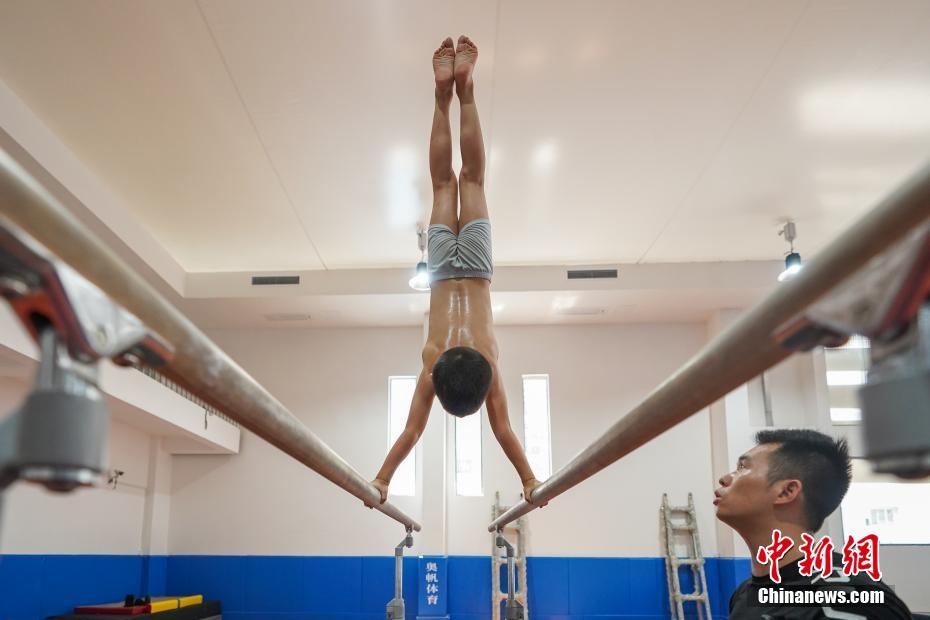 7月16日,小學(xué)員張涵(右)在貴州榕江縣少年兒童業(yè)余體操運動學(xué)校內(nèi)進行體操訓(xùn)練。位于月亮山深處的貴州省黔東南苗族侗族自治州榕江縣,數(shù)十年來堅持少年兒童體操培養(yǎng)、訓(xùn)練,對于全縣有良好身體條件的少年兒童進行免費集中培訓(xùn)。目前該縣每年有60余名兒童在業(yè)余體操運動學(xué)校進行訓(xùn)練。炎炎夏日,孩子們不懼酷暑,刻苦訓(xùn)練追尋著自己的“體操夢”。據(jù)了解,自1972年以來,榕江縣先后向貴州省體操隊、蹦床隊輸送了21名運動員;其中有6名運動員進入國家體操隊,10名運動員榮獲“國家健將級運動員”稱號,5名運動員榮獲“國際健將級運動員”稱號,其中體操名將劉榕冰是2014年體操世錦賽男團冠軍成員之一。2004年,榕江縣被貴州省體育局授予“貴州體操之鄉(xiāng)”稱號。中新社記者賀俊怡 攝