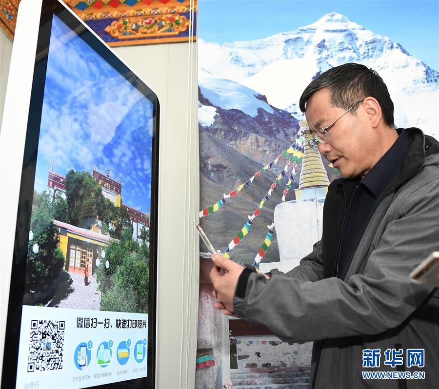 7月24日,天上西藏郵局營業(yè)員措姆在為游客提供服務(wù)。