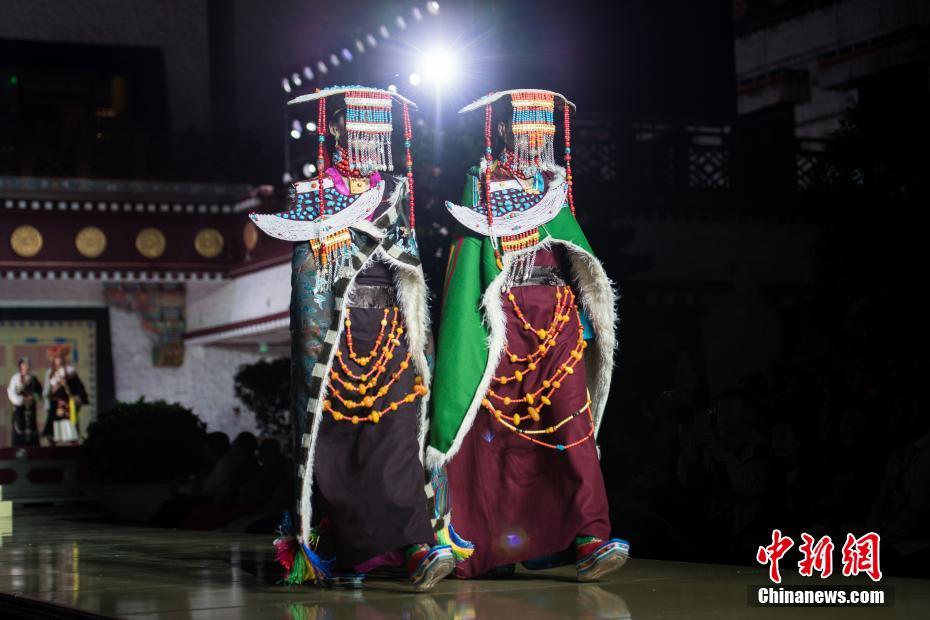 8月12日晚,由西藏職業(yè)技術(shù)學院與北京服裝學院共同打造的“凈美雪頓·美好生活”西藏民族服裝與服飾展演活動在拉薩舉行?,F(xiàn)場通過傳統(tǒng)篇、現(xiàn)代篇與未來篇三個篇章,展演了藏族傳統(tǒng)服裝26套,設(shè)計創(chuàng)新服裝58套,共計84套服裝。圖為模特展示藏族傳統(tǒng)服飾。中新社記者何蓬磊 攝