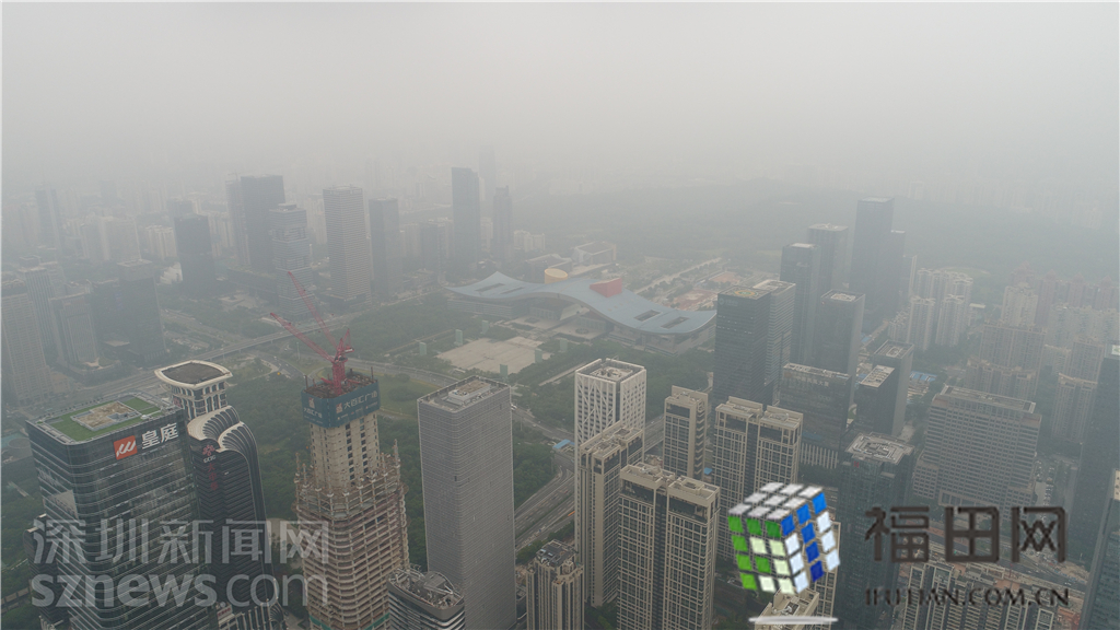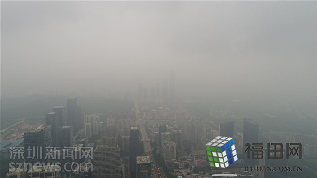 整個福田中心區(qū)都籠罩在灰霾之中。
