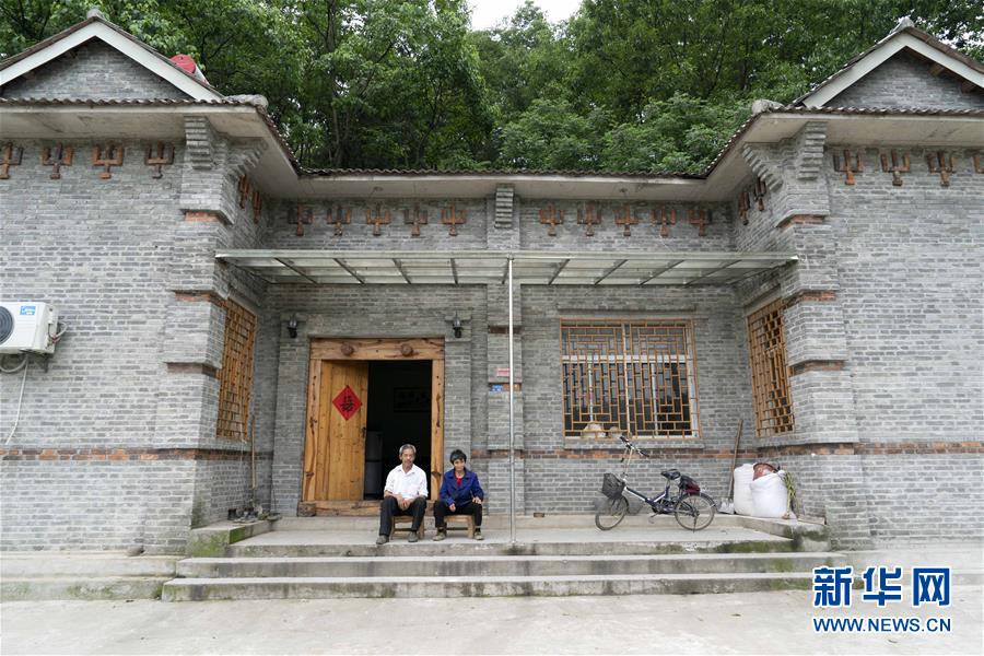 65歲的堰河村村民方文軍與愛(ài)人在自家的實(shí)心墻結(jié)構(gòu)樓房前(5月11日攝)。