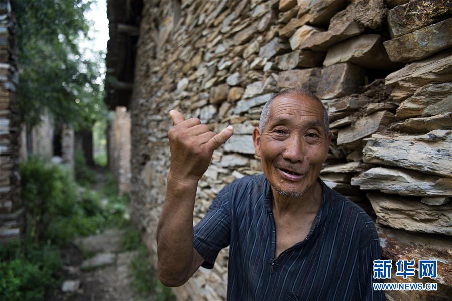 63歲的劉長(zhǎng)鎖老人生于斯長(zhǎng)于斯,整個(gè)村落僅他一人(8月7日攝)。他的孩子2014年搬進(jìn)山下的新居。 新華社記者陶明攝