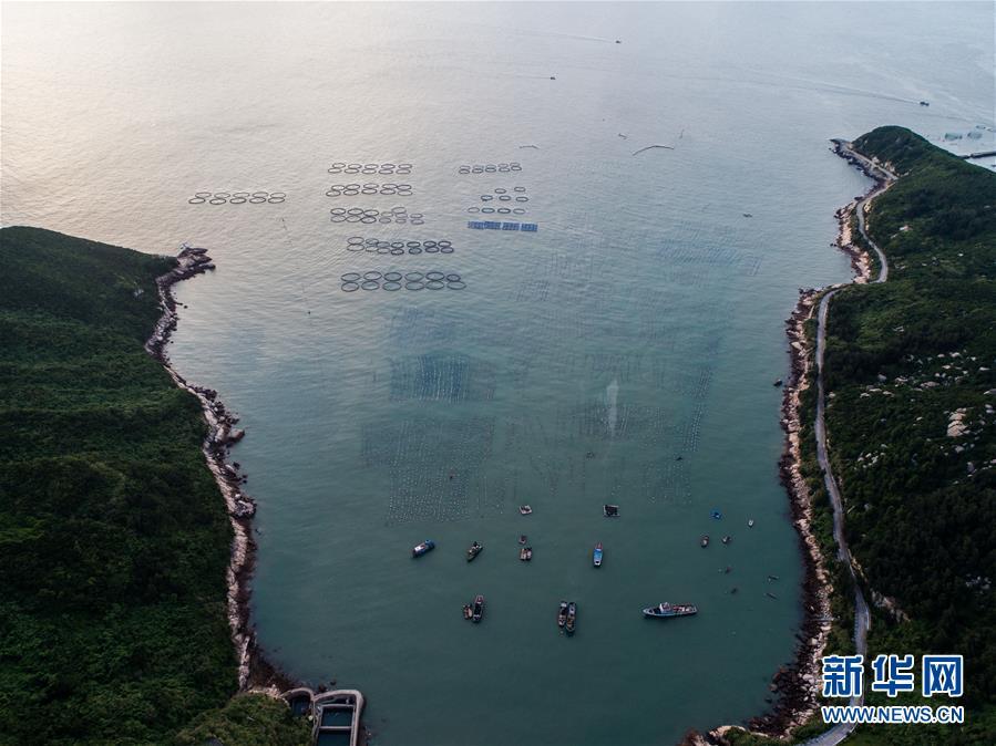 8月18日,南麂島馬祖岙海域的“海上牧場”養(yǎng)殖區(qū)(無人機拍攝)。南麂島位于浙江東南海域,水質(zhì)好,水溫、鹽度都適合大黃魚等養(yǎng)殖魚類的生長繁殖,因此當?shù)氐乃a(chǎn)品也一直保持了較高的品質(zhì)和口碑。進入8月,浙江省溫州市平陽縣南麂鎮(zhèn)海域上大片的大黃魚、貽貝等特色海產(chǎn)品養(yǎng)殖區(qū)域迎來豐收季節(jié),養(yǎng)殖戶們駕駛漁船在養(yǎng)殖區(qū)海域進行打撈收獲,在碧海藍天下構成了一幅“海上牧場”的美麗豐收景象。近年來,南麂鎮(zhèn)政府引導漁民養(yǎng)殖戶充分發(fā)揮“靠海吃?!钡馁Y源優(yōu)勢,大力發(fā)展海洋養(yǎng)殖經(jīng)濟和海島旅游經(jīng)濟,實現(xiàn)了南麂由“生態(tài)美”向“產(chǎn)業(yè)美”,“產(chǎn)業(yè)美”向“經(jīng)濟美”的轉(zhuǎn)變。同時該鎮(zhèn)堅持以大黃魚、貽貝等為特色產(chǎn)業(yè)支撐,精準發(fā)展高效海洋養(yǎng)殖業(yè),重點培養(yǎng)一批新型職業(yè)漁民,依靠專業(yè)技術支持,實現(xiàn)深海仿生養(yǎng)殖,讓好生態(tài)造就好品質(zhì),重點打造南麂養(yǎng)殖品牌,組建營銷網(wǎng)絡,拓展特色海產(chǎn)品市場。新華社記者 徐昱攝