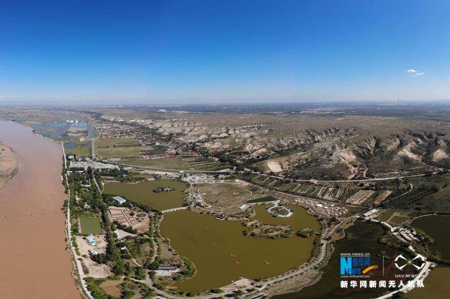 航拍黃河托克托段兩岸風(fēng)光,東岸是魚米之鄉(xiāng)。新華網(wǎng) 張偉 攝