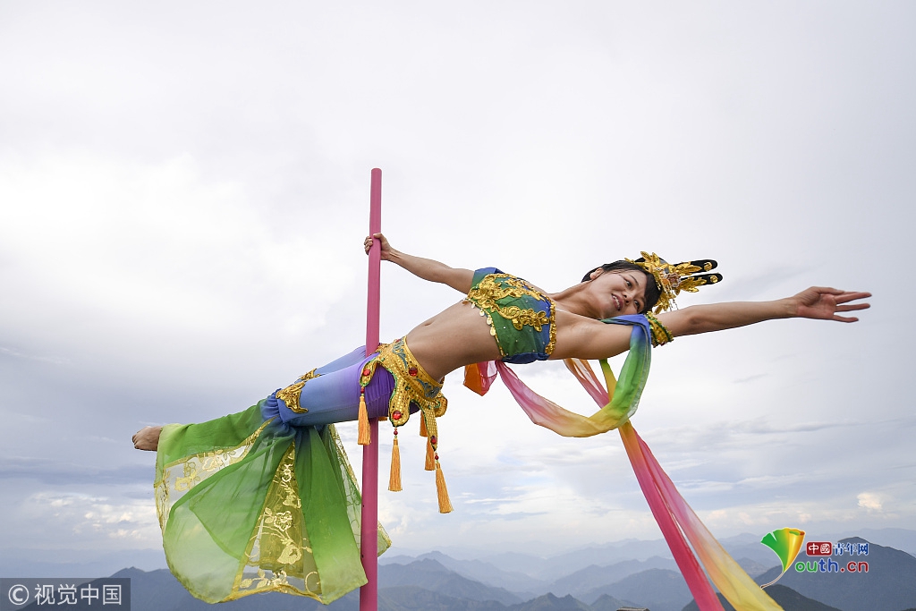 2018年9月20日,中秋節(jié)前夕,位于長(zhǎng)三角第一高峰海拔1929米的浙江龍泉山頂,一場(chǎng)柔美的鋼管舞表演吸引了眾人圍觀。