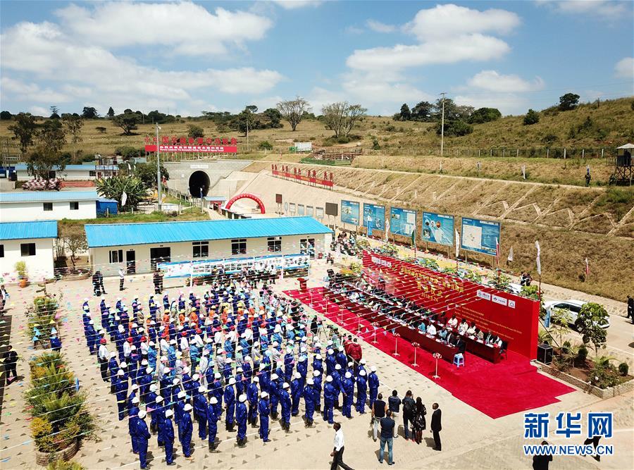 這是9月24日拍攝的內(nèi)羅畢-馬拉巴標(biāo)軌鐵路(內(nèi)馬鐵路)項目第一期恩貢隧道貫通儀式現(xiàn)場(航拍照片)。 由中國交通建設(shè)股份有限公司承建的內(nèi)羅畢-馬拉巴標(biāo)軌鐵路(內(nèi)馬鐵路)項目第一期恩貢隧道24日實現(xiàn)貫通。據(jù)悉,恩貢隧道全長約4.5公里,是目前東非地區(qū)最長的鐵路隧道。它的建成標(biāo)志著內(nèi)馬鐵路項目第一期取得了突破性進(jìn)展。 新華社記者王騰攝