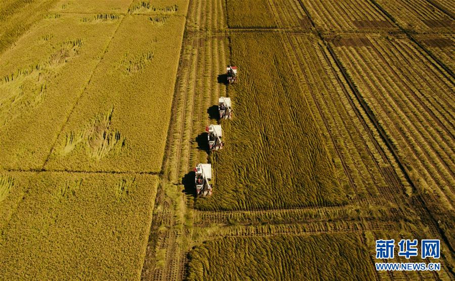在吉林省吉林市萬昌鎮(zhèn),農(nóng)民駕駛收割機收割水稻(9月18日無人機拍攝)。 金秋十月,位于“黃金水稻帶”的吉林省喜迎豐收,全省1200多萬畝水稻陸續(xù)開鐮。 記者在吉林省水稻主產(chǎn)區(qū)走訪發(fā)現(xiàn),連年豐收的喜人圖景背后,蘊藏著許多引人矚目的“時代之變”。 新華社記者 許暢 攝