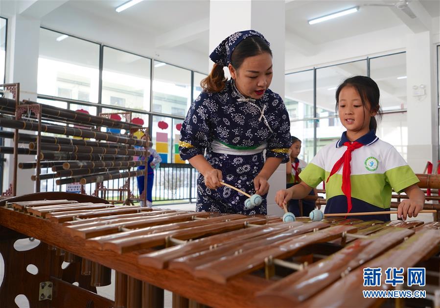 10月8日,崇義縣竹樂樂團的演員在教學生演奏竹板琴。 近年來,江西省崇義縣思源實驗學校定期開設(shè)竹樂課,邀請崇義縣竹樂樂團的演員教授學生演奏竹排琴、竹板琴等竹樂樂器,激發(fā)學生了解傳統(tǒng)文化的熱情。 新華社記者胡晨歡攝