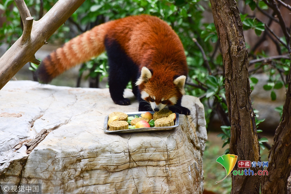2016年9月10日,重慶,中秋節(jié)即將來臨,飼養(yǎng)員們給一些動物也發(fā)放了“月餅”,根據(jù)不同的動物選擇不同的食材。