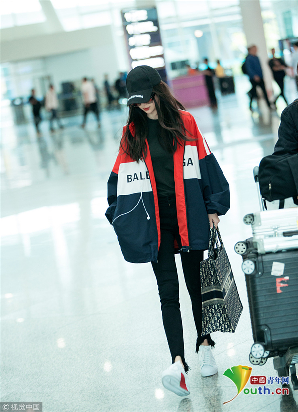 2018年10月11日,深圳,Angelababy現(xiàn)身深圳機(jī)場(chǎng),頭戴鴨舌帽的她露出半張小臉紅唇嬌艷,一身休閑裝扮時(shí)尚靚麗,手中的大包與她纖瘦的身材形成鮮明對(duì)比,十分搶鏡,在上身的寬大運(yùn)動(dòng)衣襯托下,套著緊身褲的雙腿更顯細(xì)長(zhǎng)。