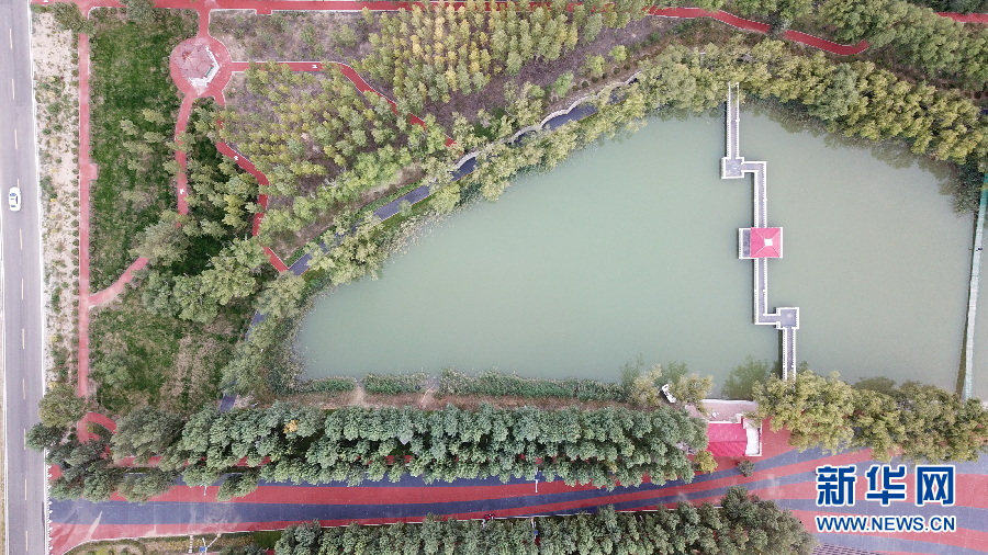 恩格貝生態(tài)示范區(qū)位于庫布齊沙漠中段,總面積200平方公里。這里曾經(jīng)風(fēng)沙肆虐,恩格貝生態(tài)示范區(qū)建設(shè)者經(jīng)過長期艱苦奮斗,用雙手和鐵鍬“種”出一片人造沙漠綠洲,在沙漠里打造了一顆璀璨的生態(tài)明珠,如今這里是國家生態(tài)旅游示范區(qū)和國家4A級景區(qū)。月亮湖位于恩格貝生態(tài)示范區(qū)核心區(qū)域,周圍被綠色植被環(huán)繞,在無人機航拍視角下,猶如鑲嵌在沙漠綠洲里的一塊碧玉,呈現(xiàn)出大自然的和諧之美。(新華網(wǎng) 王宇 攝)
