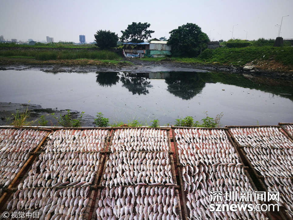 鄱陽湖畔漁民趁秋光晾魚蝦