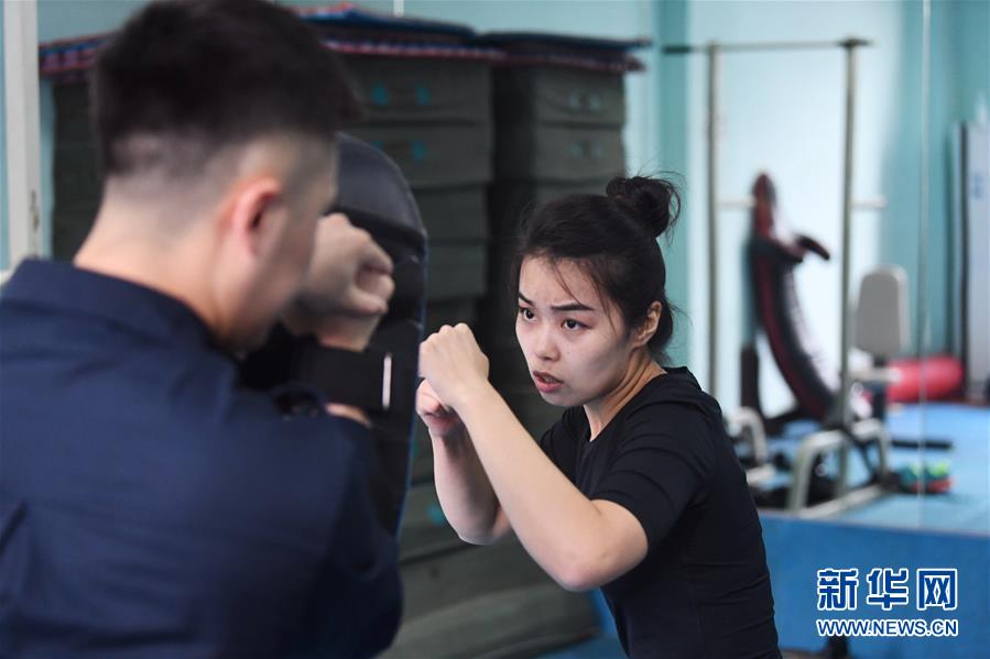 10月16日,湯春燕在健身房內(nèi)進行擒敵訓(xùn)練。