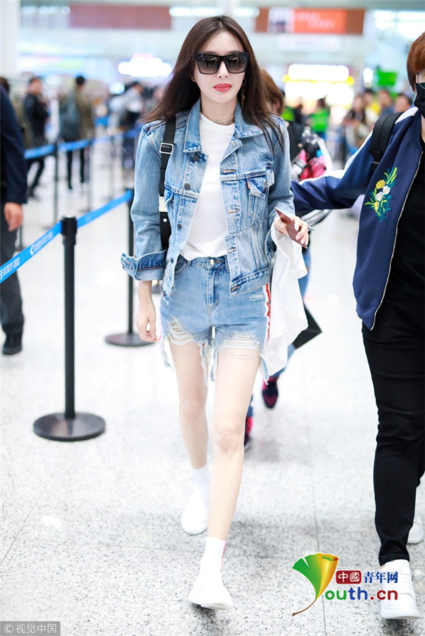 2018年10月17日,上海,秦嵐現(xiàn)身機(jī)場。她一身牛仔LOOK露出白皙長腿,雪膚紅唇美得不可方物,長發(fā)飄飄玉手撩發(fā)女神范十足。